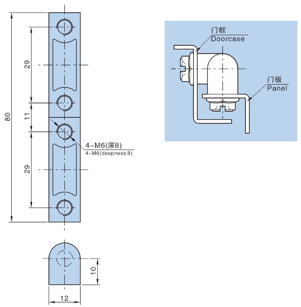 ● 材质:锌合金动、静铰链,分不锈钢和镀镍钢销子