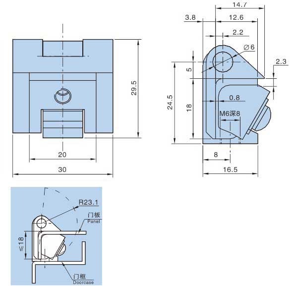 ● 材质:锌合金动、静铰链,分不锈钢和镀镍钢销子,镀锌钢压板