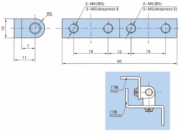 ● 材质:锌合金动、静铰链,分不锈钢和镀镍钢销子