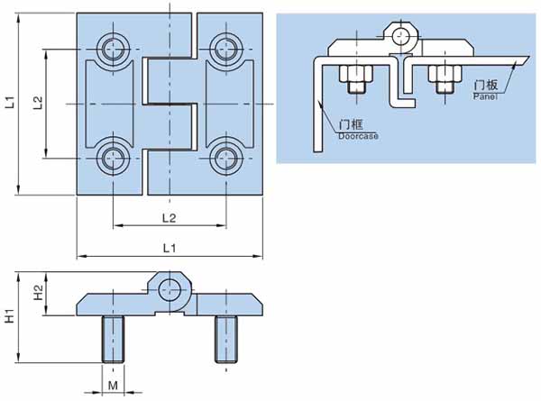 ● 材质:锌合金动、静铰链,分不锈钢和镀镍钢销子及镶嵌螺钉;