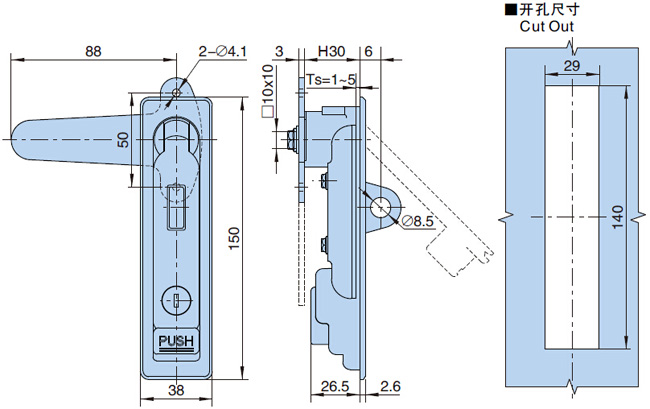 ● 材质:锌合金锁壳、转轴,镀锌压板、锁片