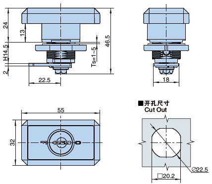 ● 结构说明:锁芯旋转180,手柄旋转90°实