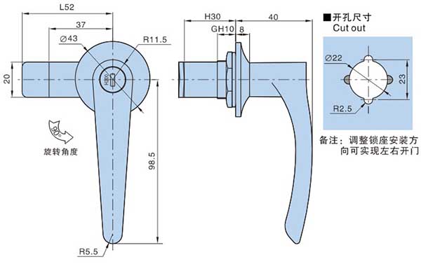 ● 材质:锌合金锁体、螺母,镀锌锁片