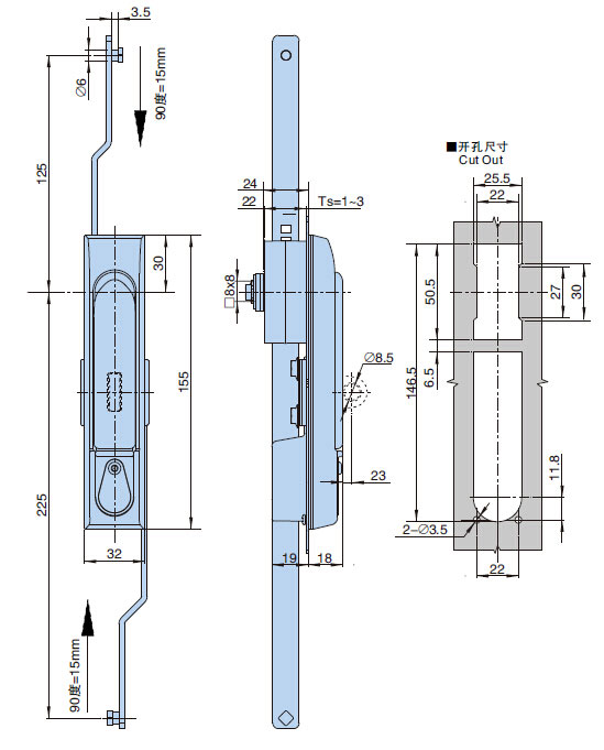 ● 备注:锁片开孔□8×8