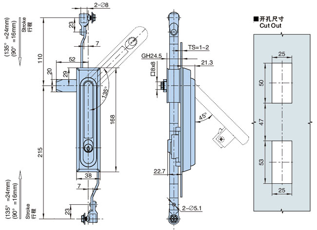 ● 备注:锁片开孔□8x8