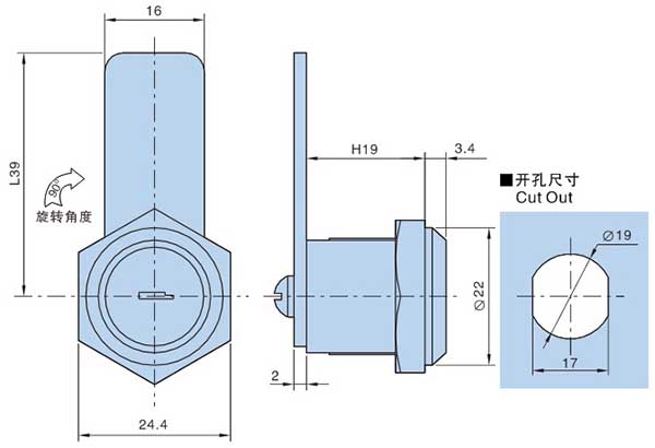 ● 材质:锌合金锁体、螺母,镀锌锁片