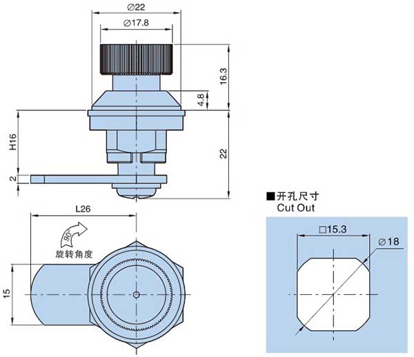 ● 备注:锁片开孔□7X7、可90°定位。