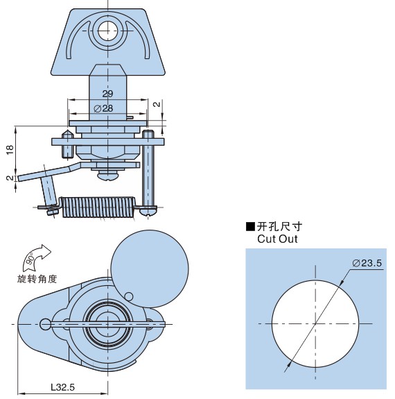 ● 材质:锌镍钢锁壳、锁片、锁芯,不锈钢防水盖;