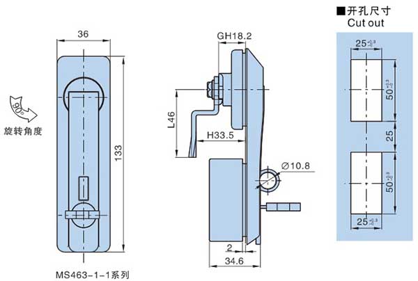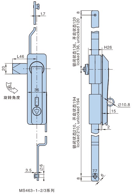 ● 备注:锁片开孔□8×8,与MS705系锁片通用