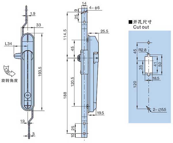 ● 材质:锌合金锁体、转轴,镀锌压板、锁片、镀镍传动条