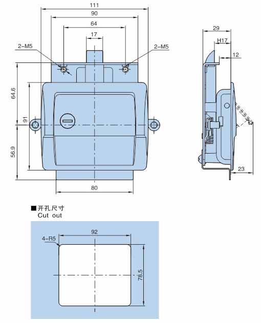 ● 材质:锌合金锁体,镀锌钢锁栓装置