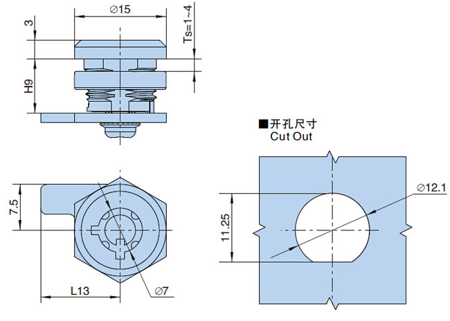 ● 适用门板厚度:1-4mm