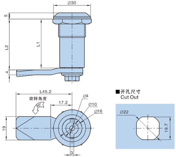 ● 材质:锌合金锁体,螺母,镀锌钢垫圈、锁片