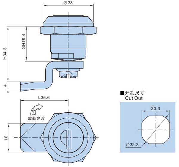 ● 材质:锌合金锁体,镀锌螺母、锁片
