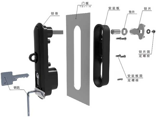 ● 备注:锁背旋转90°实现打开及锁闭调换定位件方向实现左右开启,带挂锁。