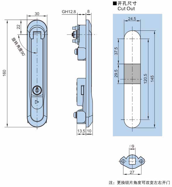 ● 材质:ABS锁壳,锌合金锁背,A3锁片,安装板