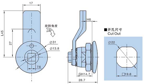 ● 材质:锌合金锁体,钥匙,镀锌螺母、锁片