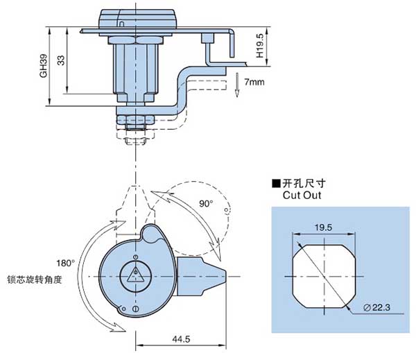 ● 备注:压缩式门锁,压缩量约7mm