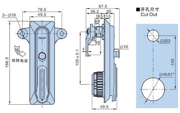 ● 材质:PA66 锁体、锁背,锌合金螺母