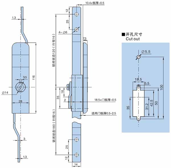 ● 适用门板厚度:0.5~2.5mm