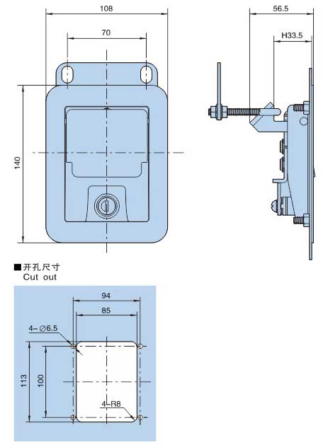 ● 材质:A3钢面板、锁背,锌合金锁壳