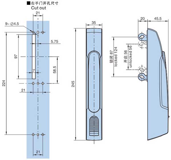 ● 材质:铝合金锁壳、PA6外壳、Pa6手柄、锌合金传动件