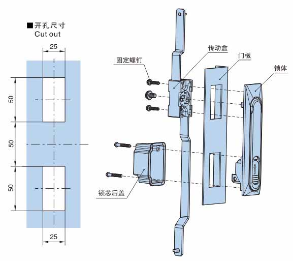 ● 材质:锌合金锁体、 镀镍传动条;