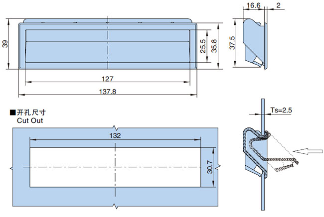 ● 适用门板厚度:2.5mm