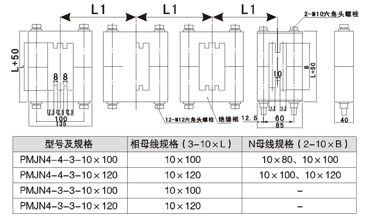 PMJ-N、三相或四拼绝缘母线框(组合型式)