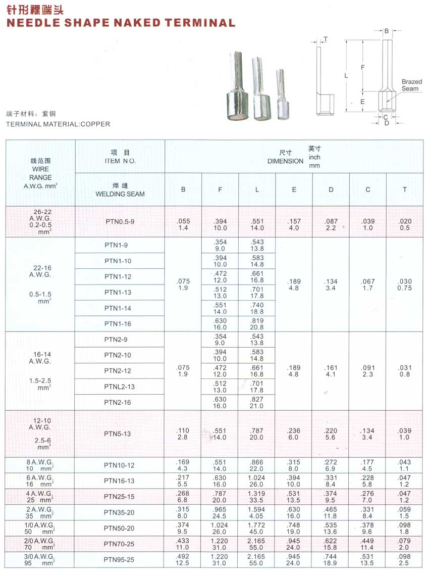 针型裸端头