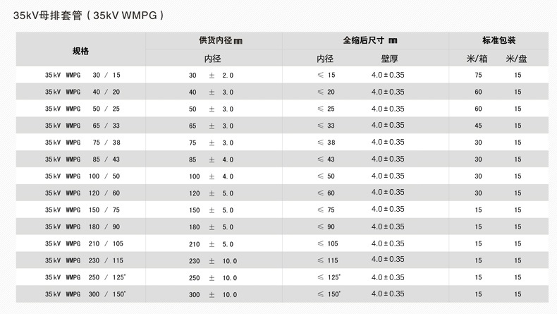 35kv连续母排保护热缩套管采用高能电子束轰击交联的环保性聚烯烃热缩材料制成,限制PBB、PBBD、PBBE类及重金属等对环境有害的物质,