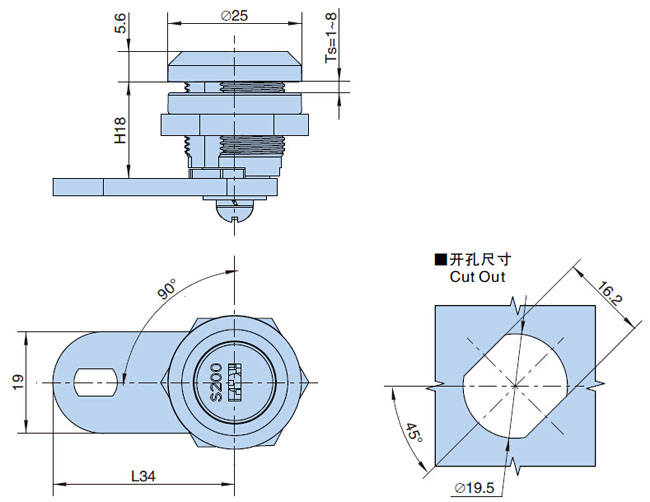 ● 结构功能:90°旋转实现开启或锁闭