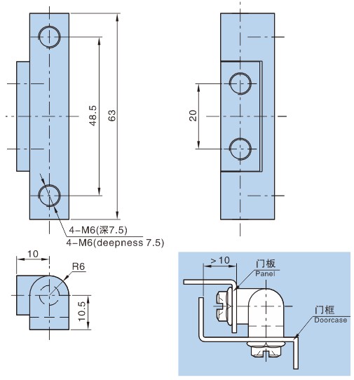 ● 材质:锌合金动、静铰链,分不锈钢和镀镍钢销子