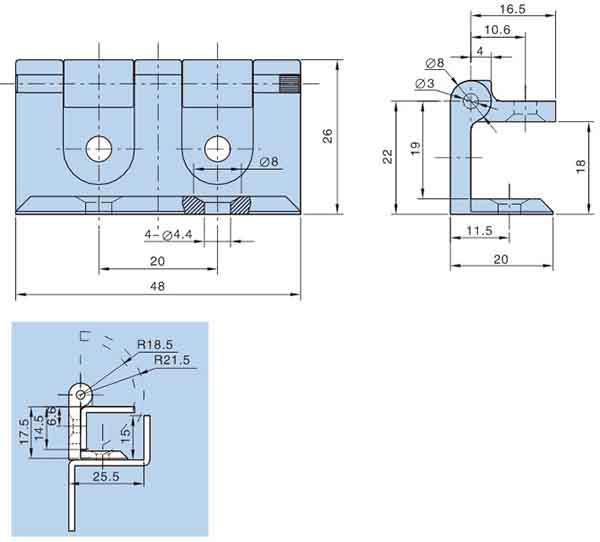 ● 材质:锌合金动、静铰链,分不锈钢和镀镍钢销子