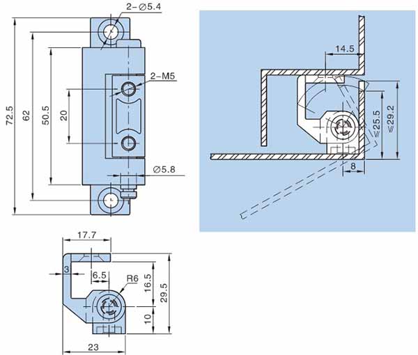● 材质:锌合金动、静铰链,镀镍钢销子