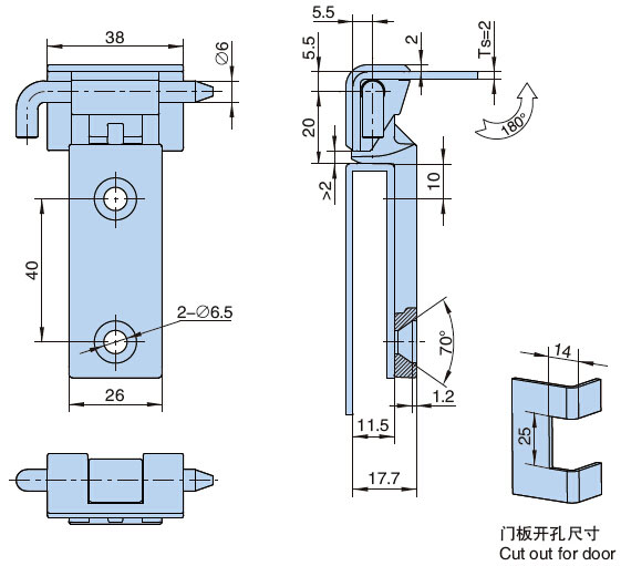 ● 备注:开启角度180°