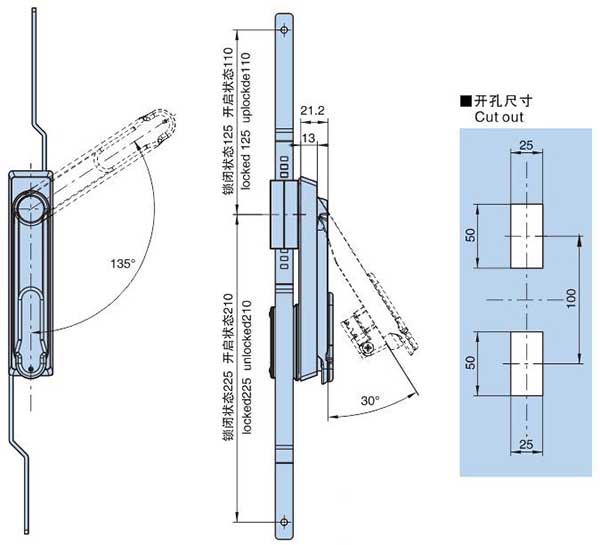 ● 材质:不锈钢锁体,镀镍传动条