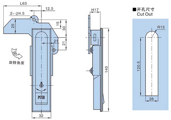 ● 材质:锌合金锁体、镀锌压板、锁片;