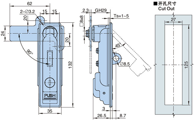 ● 材质:锌合金锁体,碳钢锁片、安装板