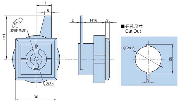 ● 材质:ABS锁壳,螺母、锌合金锁芯和钥匙,镀锌锁片