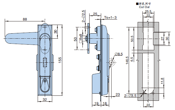 ● 备注:锁片开孔□8×8