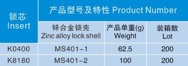 ● 材质:锌合金和塑料两种锁体,镀锌钢螺母、锁片