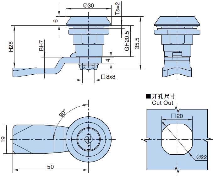 ● 材质:锌合金锁体,锁芯,镀锌钢栓。