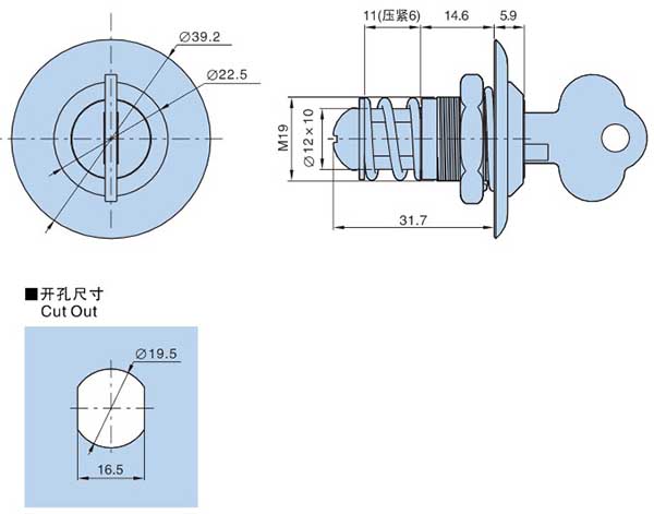 ● 材质:不锈钢面板,锌合金锁壳,锁芯,镀镍钢钥匙