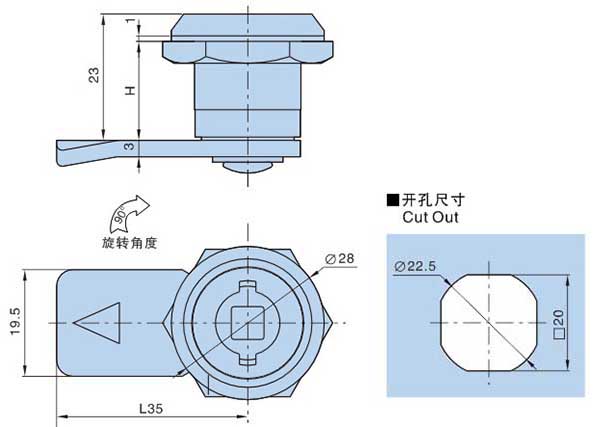 ● 材质:锌合金锁体,镀锌螺母、锁片