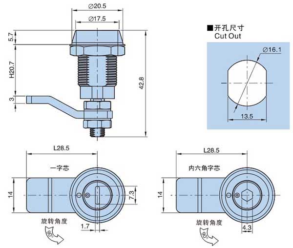 ● 材质:锌合金锁壳、锁芯,镀锌钢螺杆、螺栓