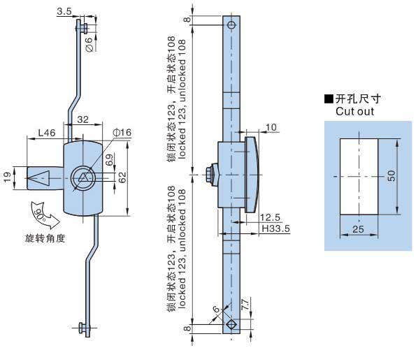 ● 材质:锌合金锁体、镀锌锁片、镀镍传动条