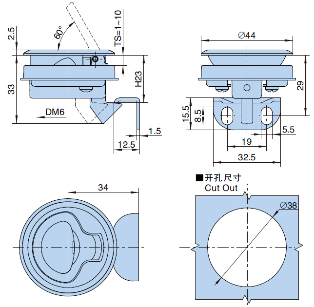 ● 材质:锌合金锁壳,手柄、锁舌,A3安装板,