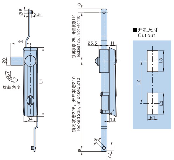 ● 材质:锌合金锁体,转轴,镀锌压板、锁片、镀镍传动条