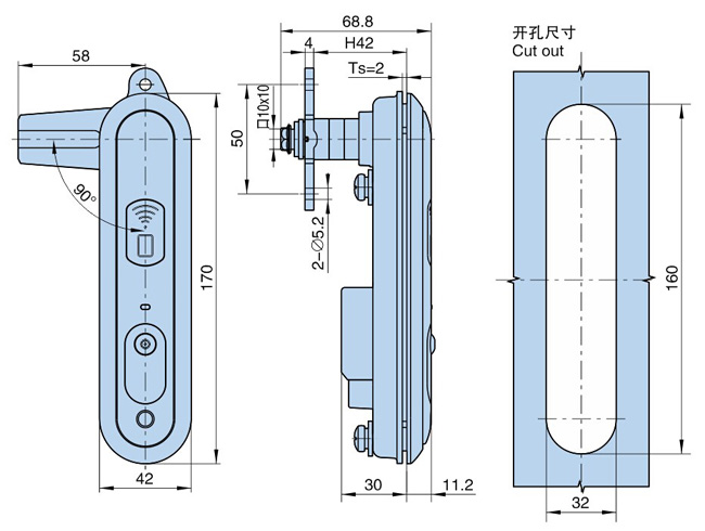 ● 行程18mm,三点锁定,在锁体结构不变